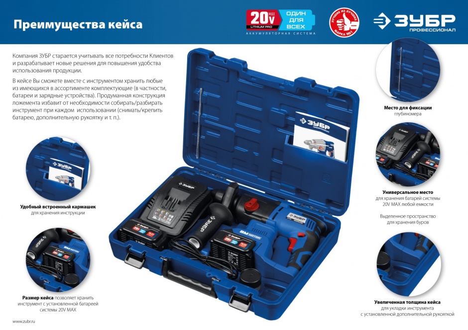 - Комфортная дополнительная рукоятка позволяет надежно удерживать инструмент при работе