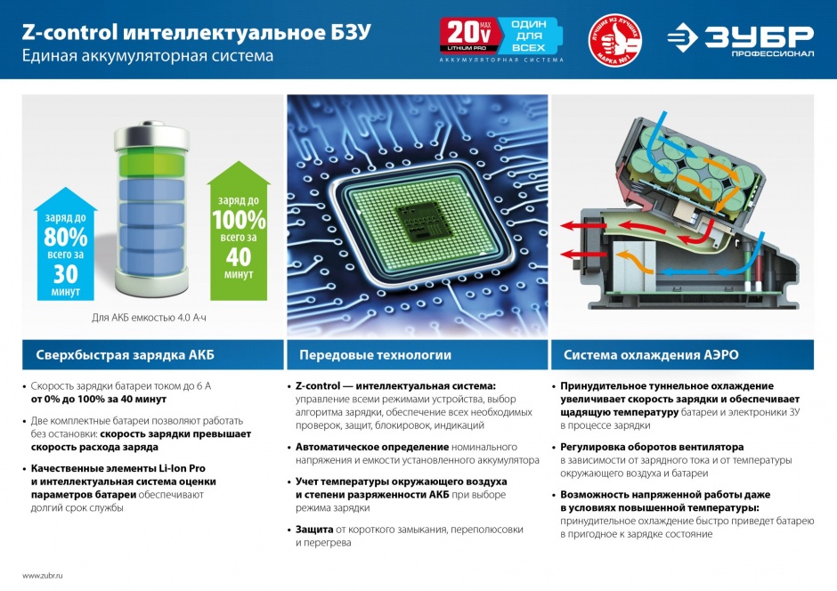 - Плата управления батареи с технологией Z-control обеспечивает: