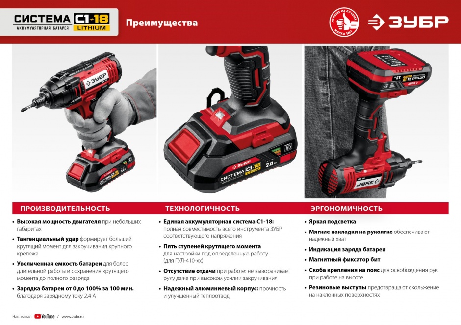- Аккумуляторная батарея емкостью 2.0 А*ч для большей производительности