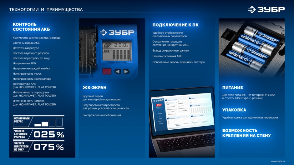 Средство наглядного представления состояния и истории использования батареи позволяет контролировать остаточный ресурс Вашей батареи.