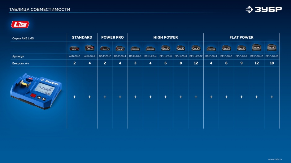 Аккумулятор LMS Power PRO 20 В, 4.0 Ач Зубр ПРОФЕССИОНАЛ BP-P-20-4