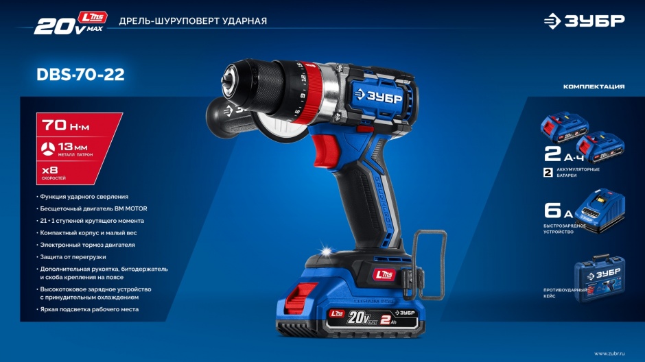 Высокотехнологичная модель в новой линейке аккумуляторного инструмента ЗУБР серии LMS Дрель-шуруповерт профессионального уровня с передовым BRUSHLESS двигателем.