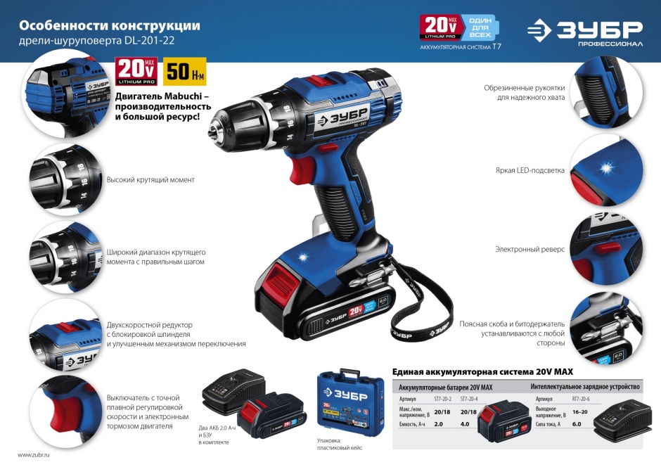 Зарядное устройство для Li-Ion 20V АКБ Зубр RT7-20-6