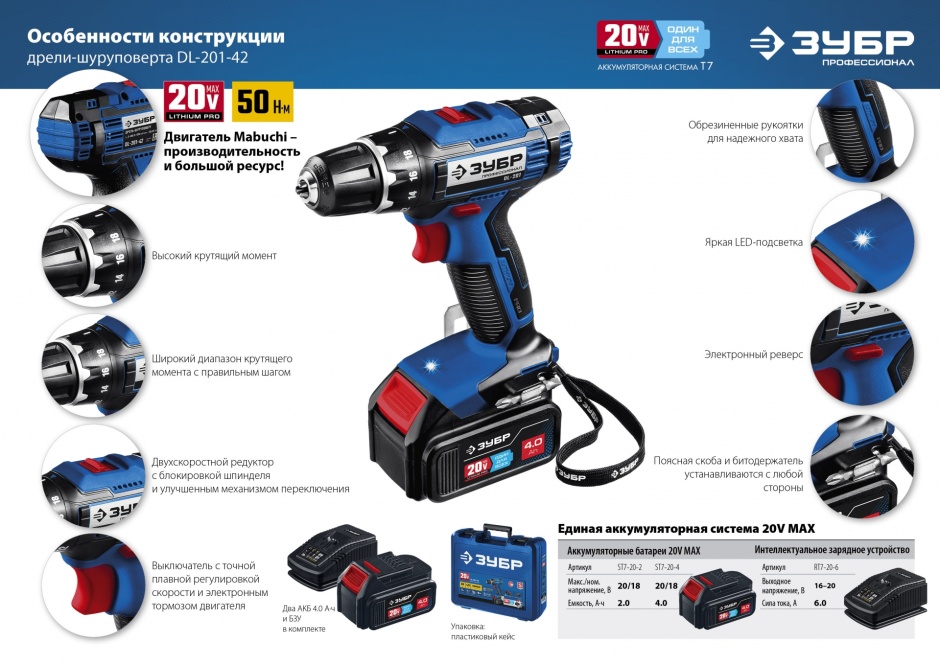 Аккумуляторная батарея T7 (20 В 6.0 Ач) Зубр ST7-20-6