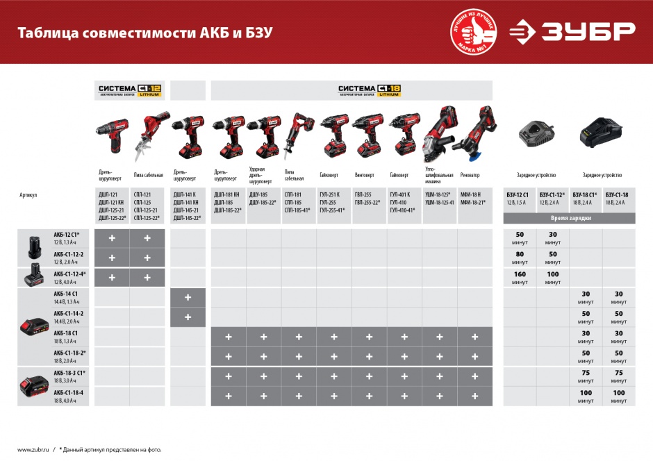 - Напряжение питания зарядного устройства, В/Гц230/50