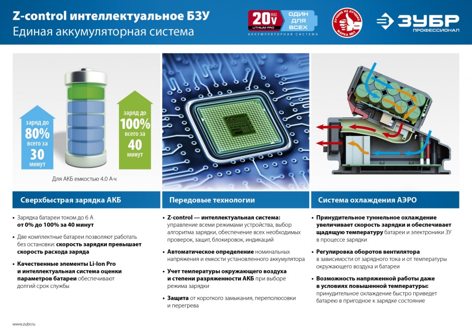 - отсутствие потери мощности в процессе работы - Плата управления батареи с технологией Z-control обеспечивает: