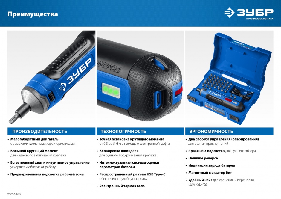 - Компактная отвертка с удобным хватом и интуитивным управлением