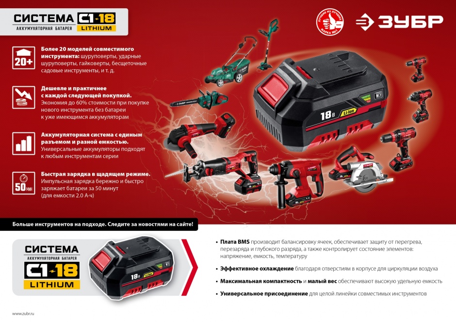 Полностью цифровое интеллектуальное устройство для бережной и максимальной (в отличие от устройств другого типа) зарядки батареи - для полной отдачи Вашего инструмента ЗУБР