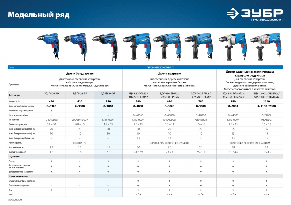 - Электронная регулировка оборотов от малых (для аккуратного засверливания) до высоких (для быстрого сверления)