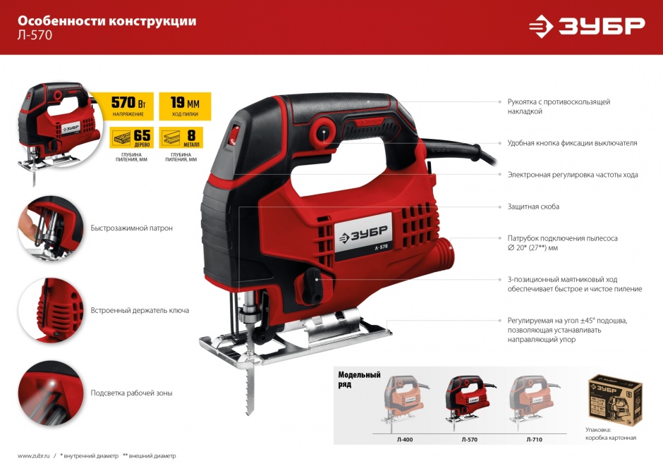- Электронная регулировка частоты хода в широком диапазоне для пиления различных материалов