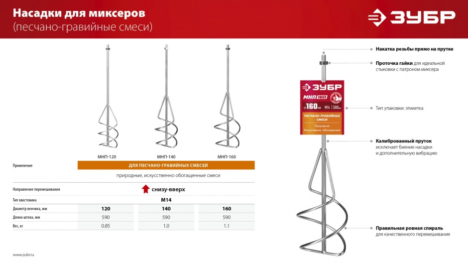 Насадка с лопастями для перемешивания песчано-гравийных смесей. Используется совместно с ручными миксерами ЗУБР ЗМР-1200Э-1, МР-1050-1, МР-1100, МР-1400-2 и МР-1600-2. Сделано в России