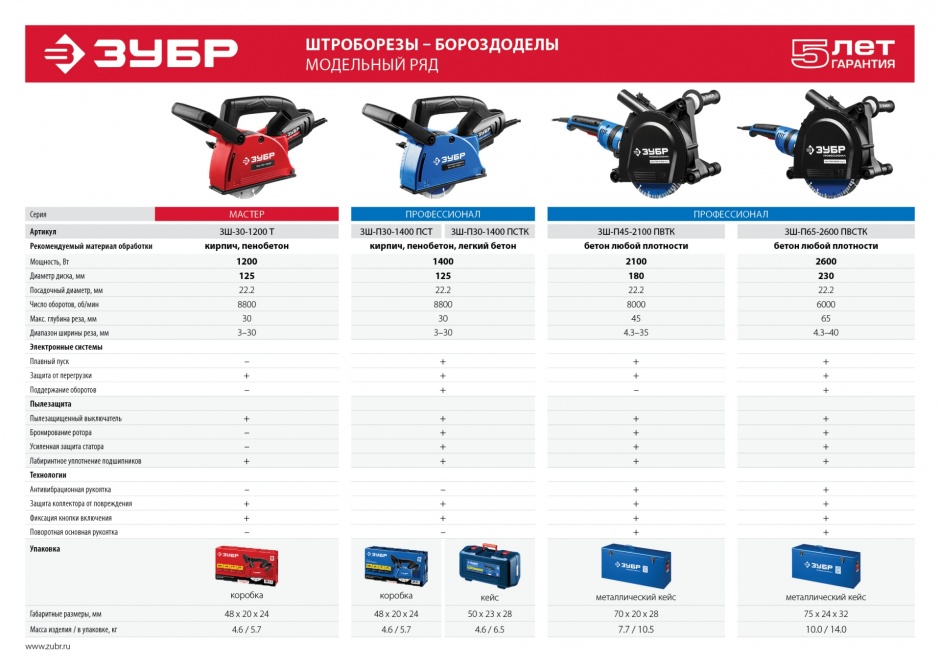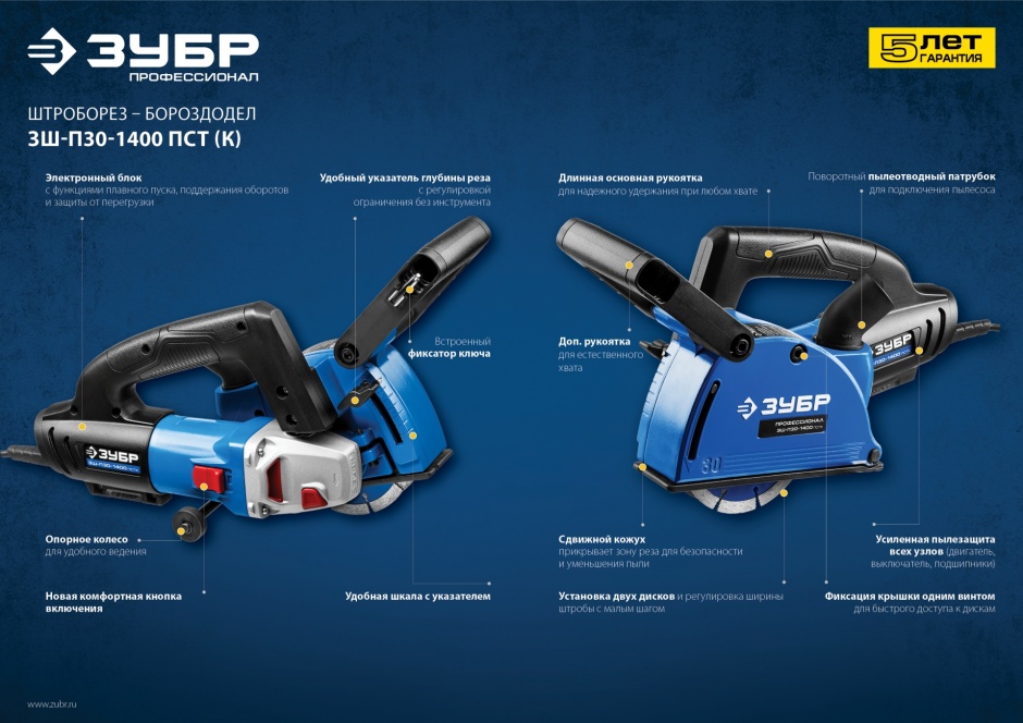 Профессиональный инструмент для выполнения штроб глубиной до 30 мм в легких и средних бетонах. Оснащен всеми современными электронными системами (плавный пуск, константная электроника, защита от перегрузки) для безопасности и большей производительности. Полная пылезащита всех узлов и комплектующие высокого класса гарантируют надежность