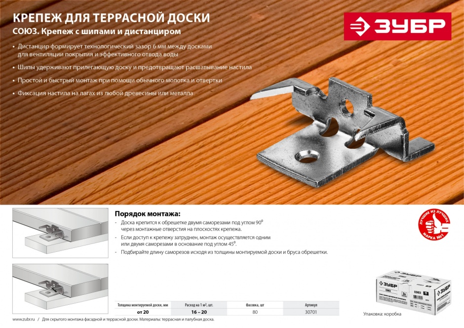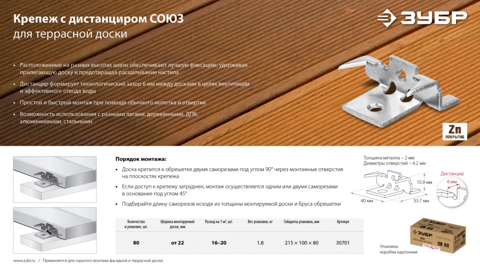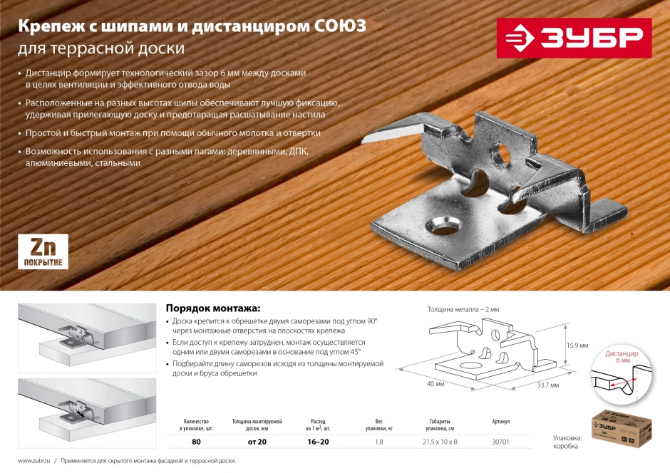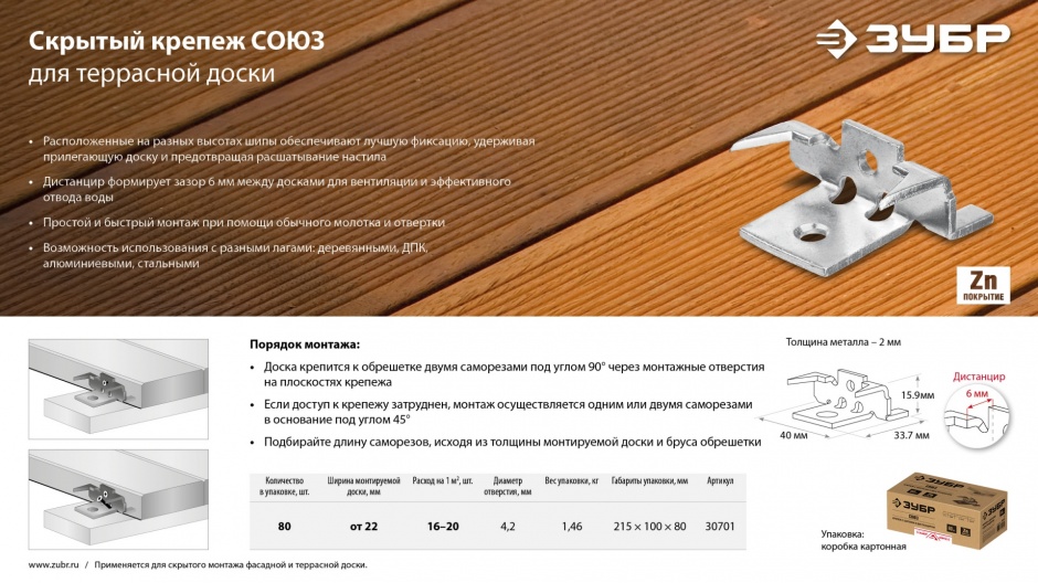 - Дистанцир формирует зазор 6 мм между досками.