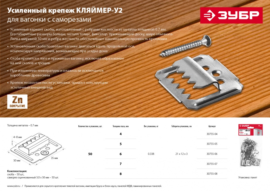 Для скрытого крепления тяжелой вагонки, имитации бруса и блок-хауса, панелей МДФ, ламинированных панелей.
