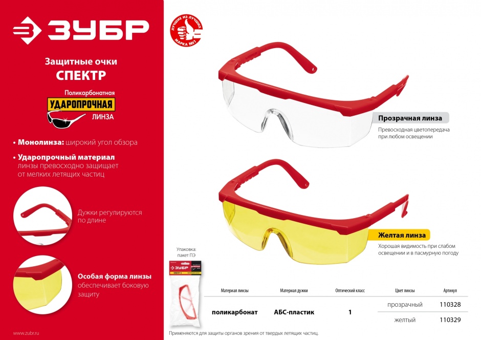 Защитные очки ЗУБР предназначены для защиты органов зрения от твердых летящих частиц.