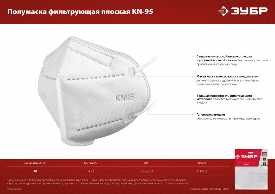 - Складная многослойная конструкция и удобный носовой зажим обеспечивают плотное прилегание полумаски к лицу