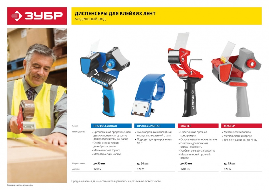 Обеспечивает удобство и комфорт при работе с клеящими лентами, облегчает и ускоряет работу. Снабжен металлическим лезвием для обрезки ленты, имеет эргономичную прорезиненную рукоятку и пластину для прижима отрезанной ленты. Оснащен металлическим каркасом, обеспечивающим высокую прочность изделия и длительный срок службы. Механический тормоз позволяет регулировать натяжение ленты.