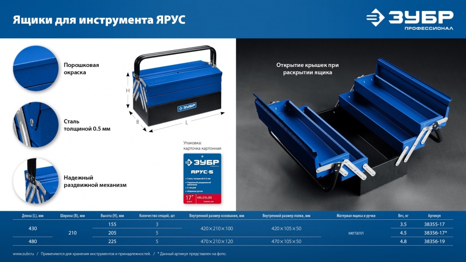 Три секции для компактного и удобного хранения и транспортировки различного ручного инструмента.