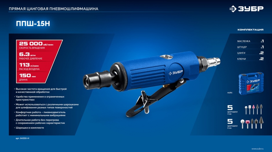 Прямая пневмошлифмашина - 1 шт.