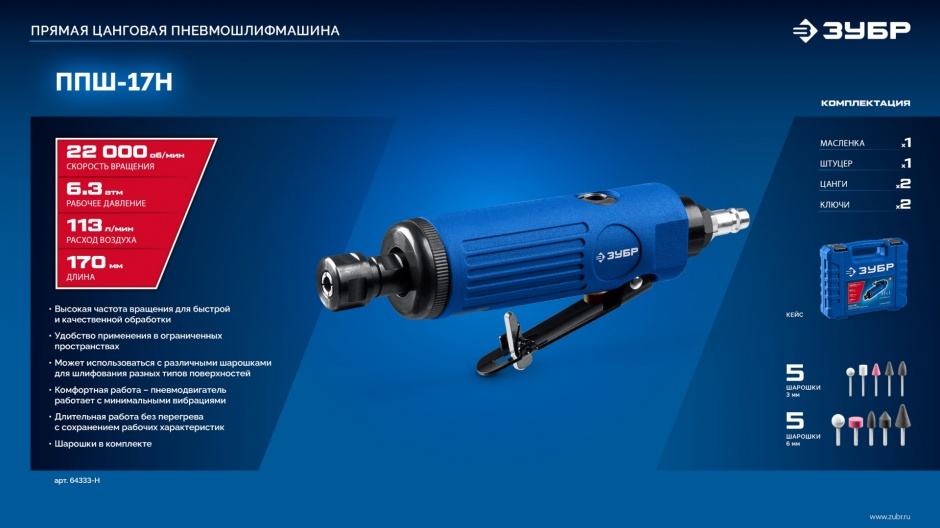 Прямая пневмошлифмашина - 1 шт.