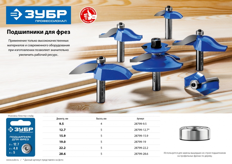 Используется для замены вышедших из строя подшипников на профильных фрезах по дереву
