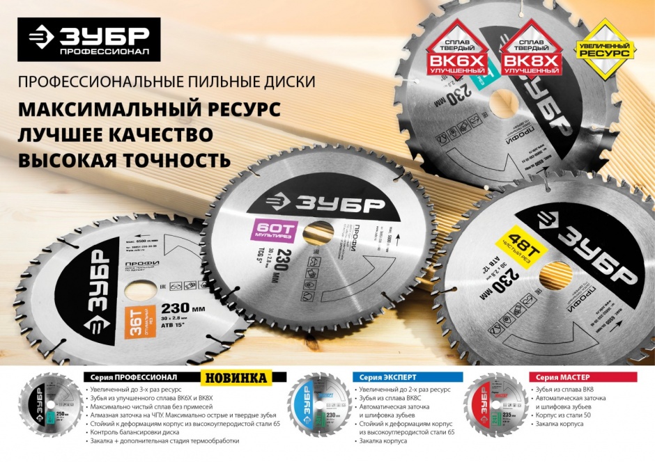 Пильные диски ″Зубр Профи″ специально разработаны для долгосрочного и эффективного пиления.