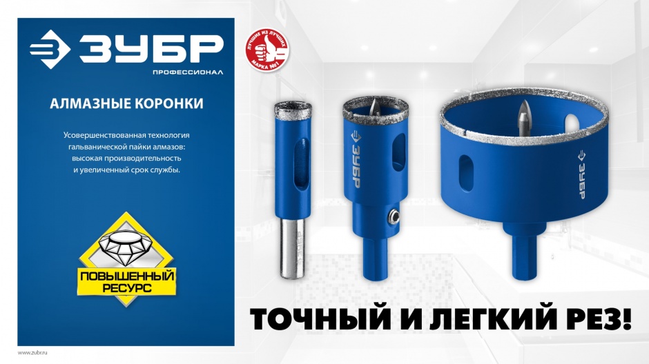 Алмазные трубчатые сверла ЗУБР отличаются повышенной прочностью и долгим сроком службы.