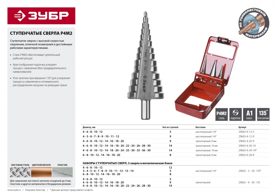 Множество диаметров в одном сверле для получения отверстий в тонколистовых материалах