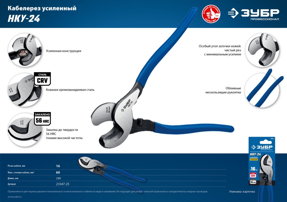 Кабелерезы ЗУБР изготовлены из высококачественной стали, предназначены для профессионального применения. Обладает повышенным ресурсом, обеспечивает высокое качество электромонтажных работ.