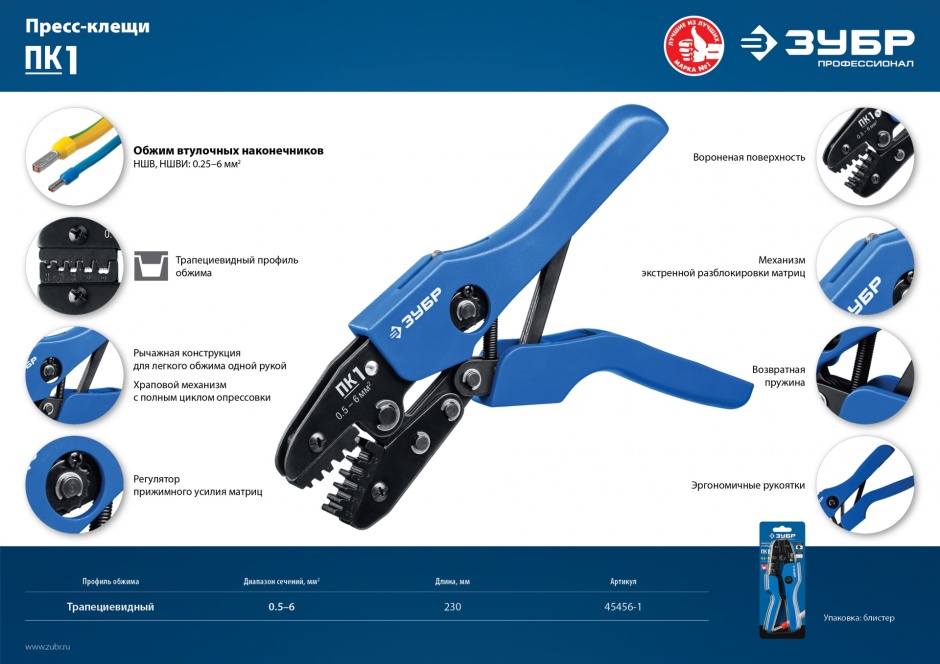 Пресс-клещи ЗУБР изготовлены из высококачественной стали, предназначены для профессионального применения. Обладают повышенным ресурсом, обеспечивает наивысшее качество электромонтажных работ.