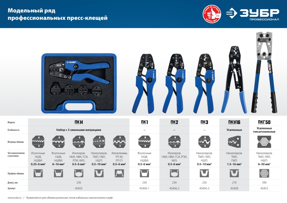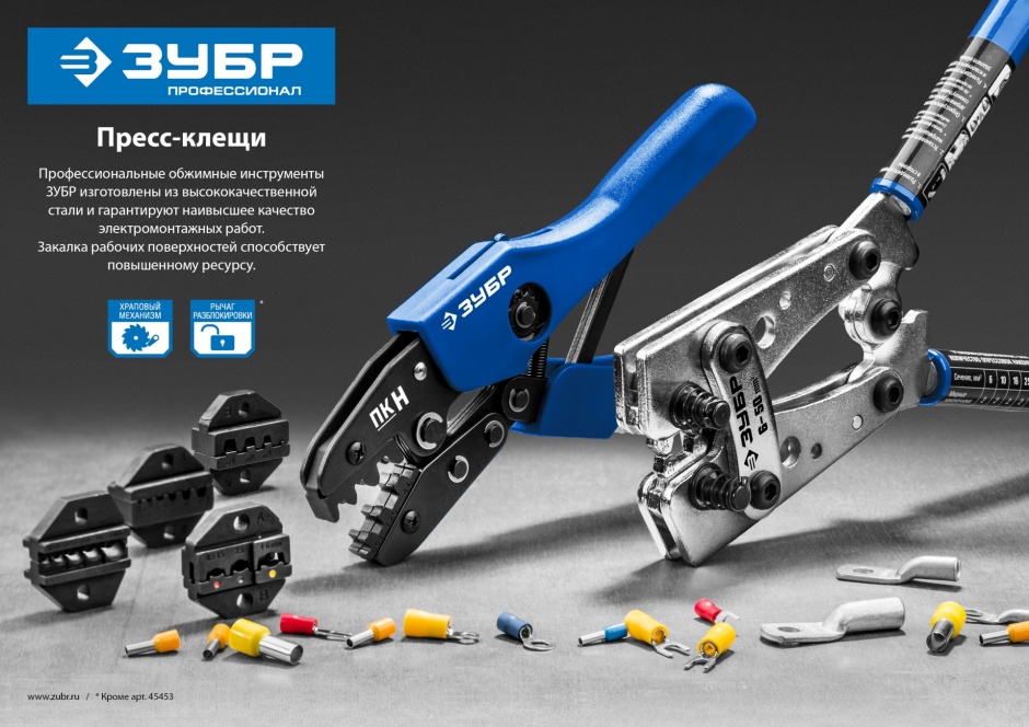 Пресс-клещи ЗУБР изготовлены из высококачественной стали, предназначены для профессионального применения. Обладают повышенным ресурсом, обеспечивает наивысшее качество электромонтажных работ.