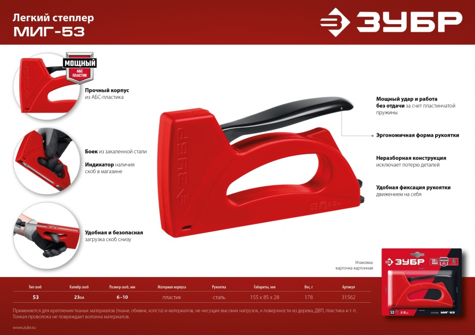 53 (A|3|11) для крепления тканных материалов(ткани, обивки, холста) и материалов не несущих высоких нагрузок к поверхности из дерева, ДВП, пластика и т.п. Тонкая проволока не повреждает волокна материалов.