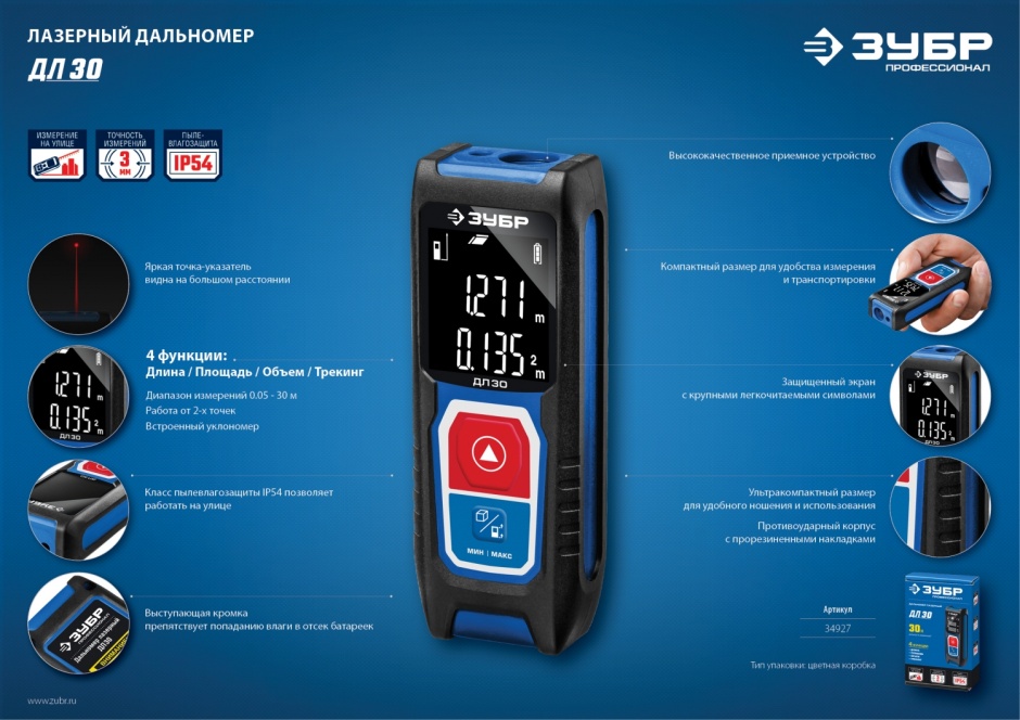 - Диапазон измерений0.03 – 30 м