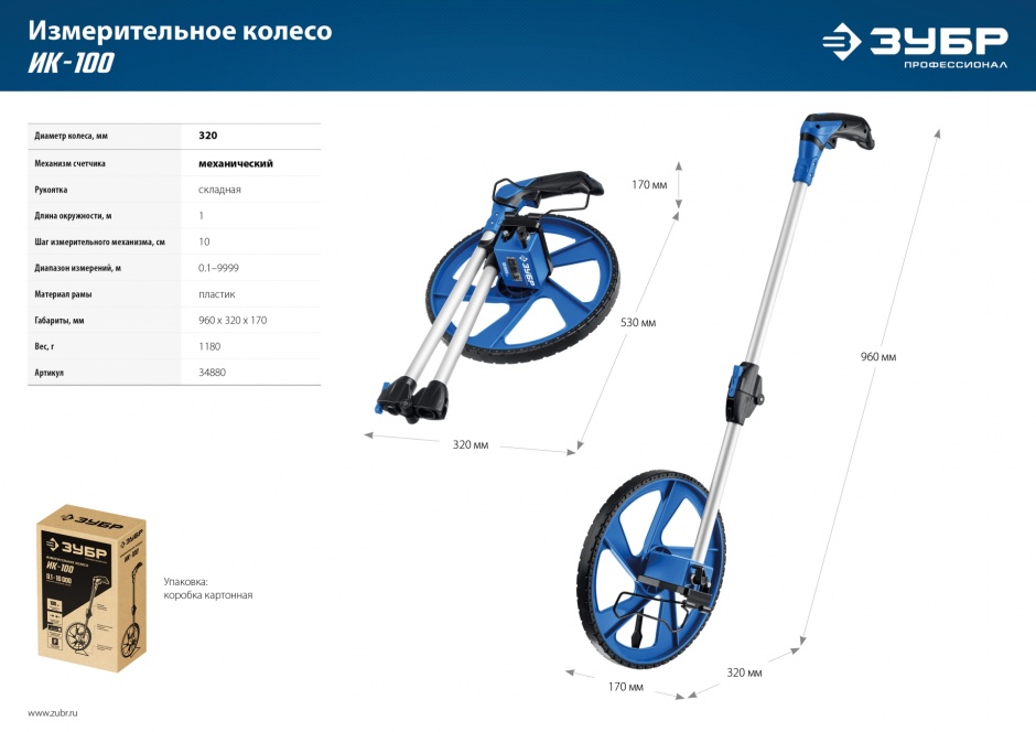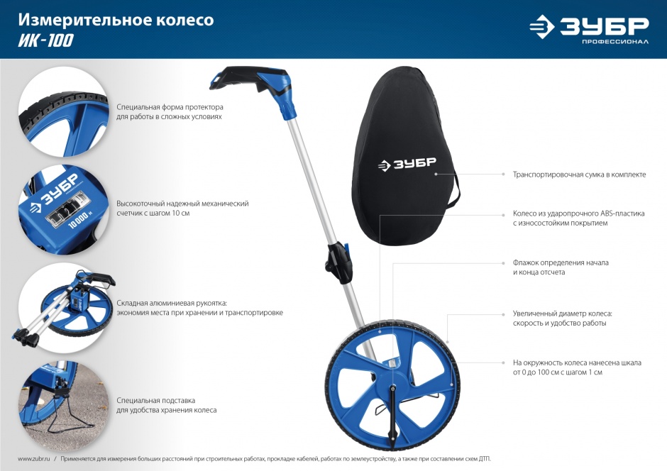 - Колесо из ударопрочного ABS-пластика с износостойким покрытием и нанесенной измерительной шкалой с шагом 1 см