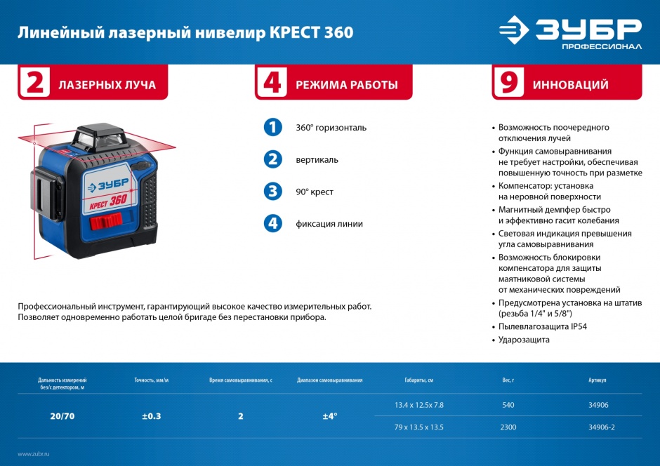 - Функция самовыравнивания устраняет необходимость настройки, гарантирует максимальную точность при разметке.