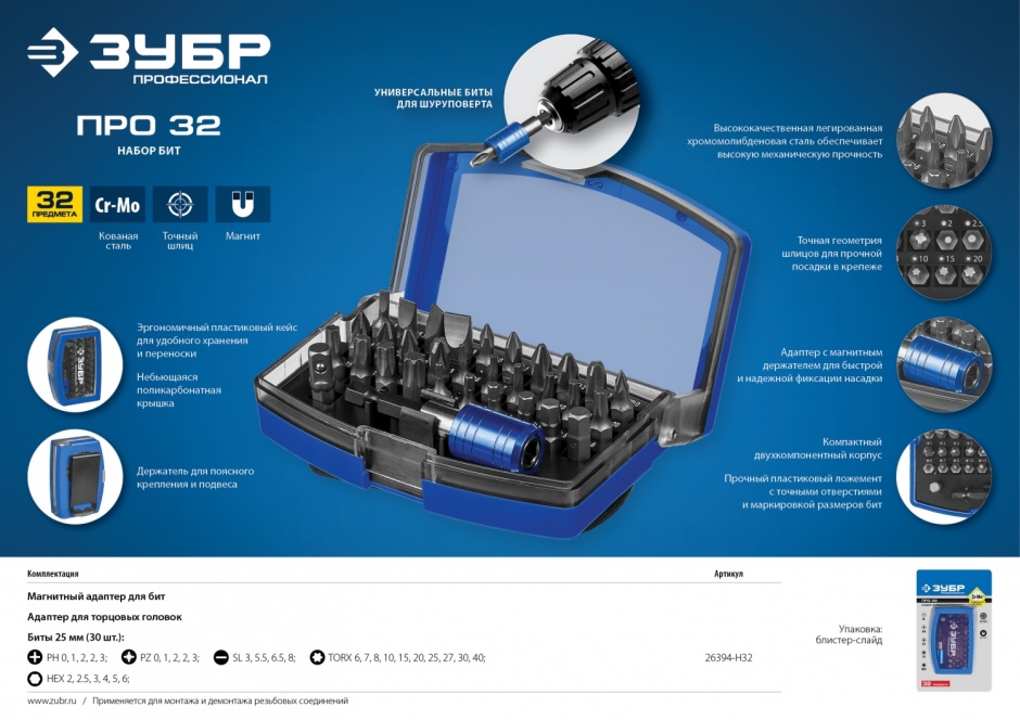 Профессиональные биты ЗУБР для ручного и механизированного инструмента изготовлены из высококачественной стали и имеют точную геометрию шлицов, что обеспечивает длительный срок службы.