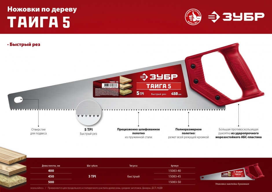Надежная конструкция с крупными прямыми зубьями обеспечивает быстрый рез поперек волокон, для крупных и средних заготовок по мягкой и твердой древесине