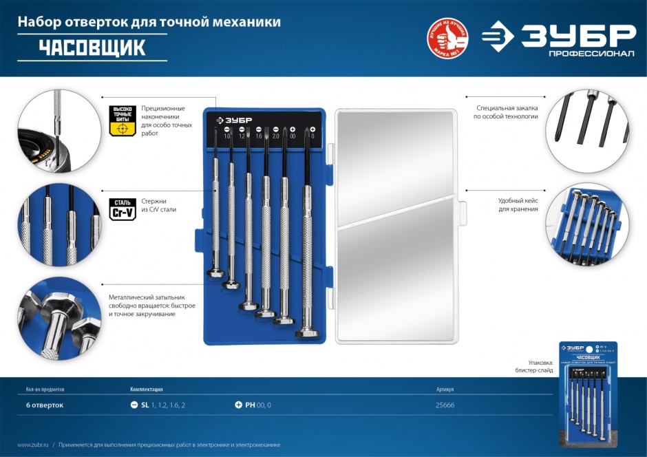 Набор прецизионных часовых отверток для выполнения особо точных работ в электромеханике и часовом деле