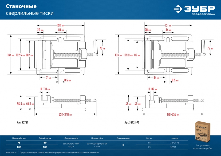 - Ширина губок, мм100