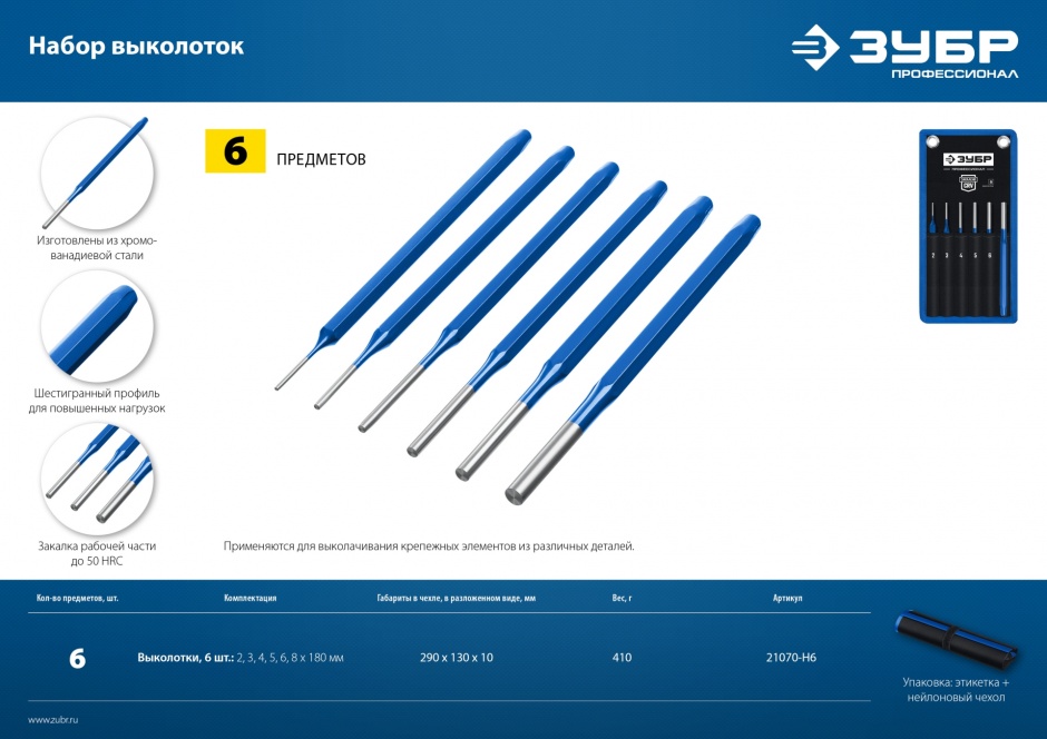 - Набор высококачественных зубил и кернеров. Произведены из хромованадиевой стали. Шестигранный профиль для повышенных нагрузков. Закалены