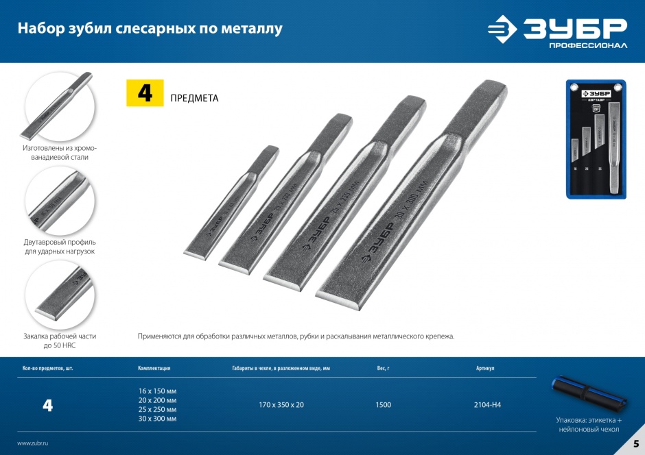 Зубило (16 х 150, 20 х 200, 25 х 250, 30 х 300 мм) - 4 шт.