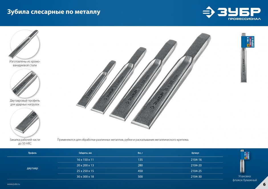 Усиленное зубило. Двутавровый профиль для усиления конструкции. Хромированное покрытие защищает от коррозии.