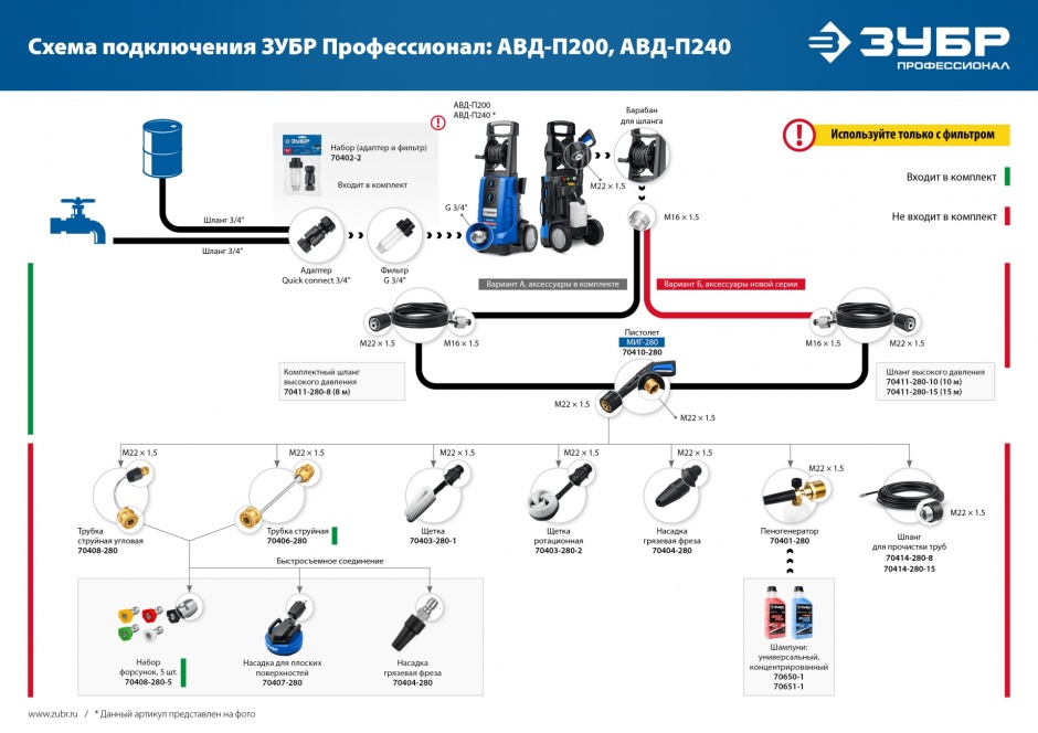 - черная - для нанесения моющего средства - Прилагаемый фильтр на вход для защиты помпы от загрязнений в воде