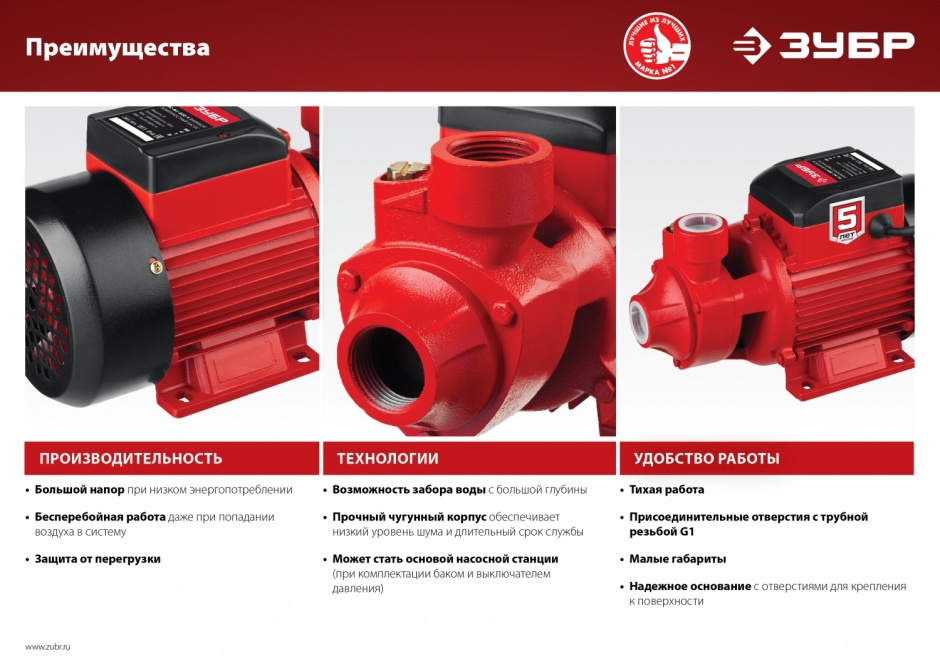 Высокие эксплуатационные свойства и простая конструкция - это то, что нужно для дачного участка. Чугунный корпус предохраняет внутренние детали от повреждения и обеспечивает долгий срок службы. Благодаря компактной конструкции насос легко установить даже в ограниченном пространстве, а крепления-ножки способствуют устойчивости. При помощи этого насоса вы без труда решите проблему водоснабжения и полива растений на участке