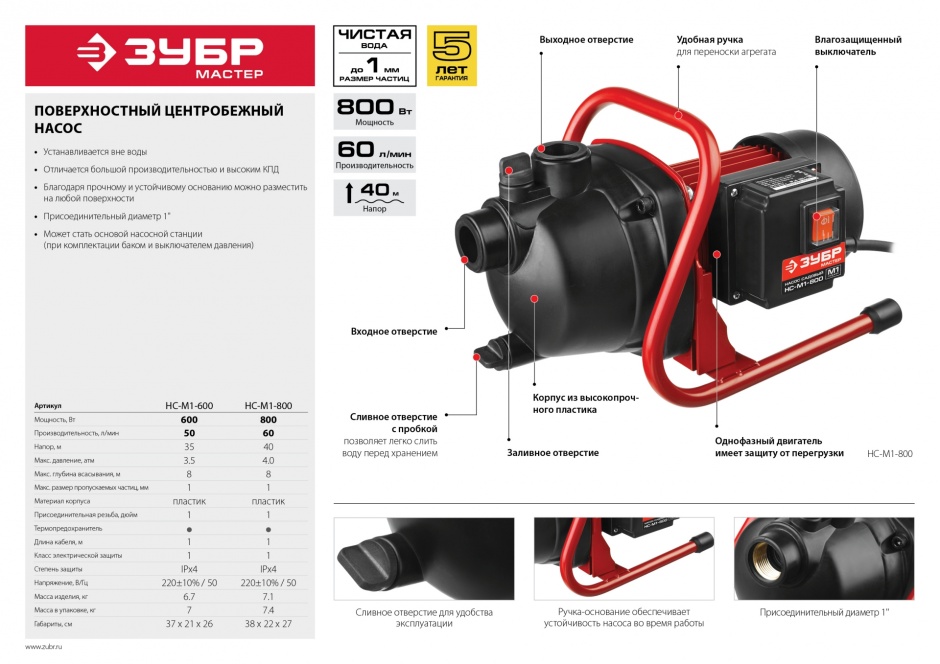 Универсальный помощник на садовых участках. Достойные технические характеристики, термопредохранитель для защиты двигателя, высокие эксплуатационные свойства и простота конструкции, которые обеспечивают надежность и безопасность работы при осушении емкостей и водоемов, организации забора воды из колодца и подачи на высоту. При помощи этого насоса вы без труда решите поставленную задачу