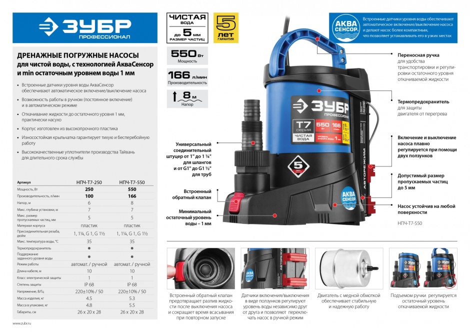 Автоматическое включение и выключение, термопредохранитель для защиты двигателя, высокие эксплуатационные свойства и простая конструкция обеспечивают надёжное и безопасное применение для перекачивания чистой и загрязнённой воды на садовых участках, при осушении ёмкостей и водоёмов, организации забора воды с глубины (колодцы, скважины) и подачи на высоту, использовании в системах аэрации и дренажа. Для увеличения срока службы насоса используются материалы только высокого качества. При помощи этого насоса вы без труда решите поставленную задачу.