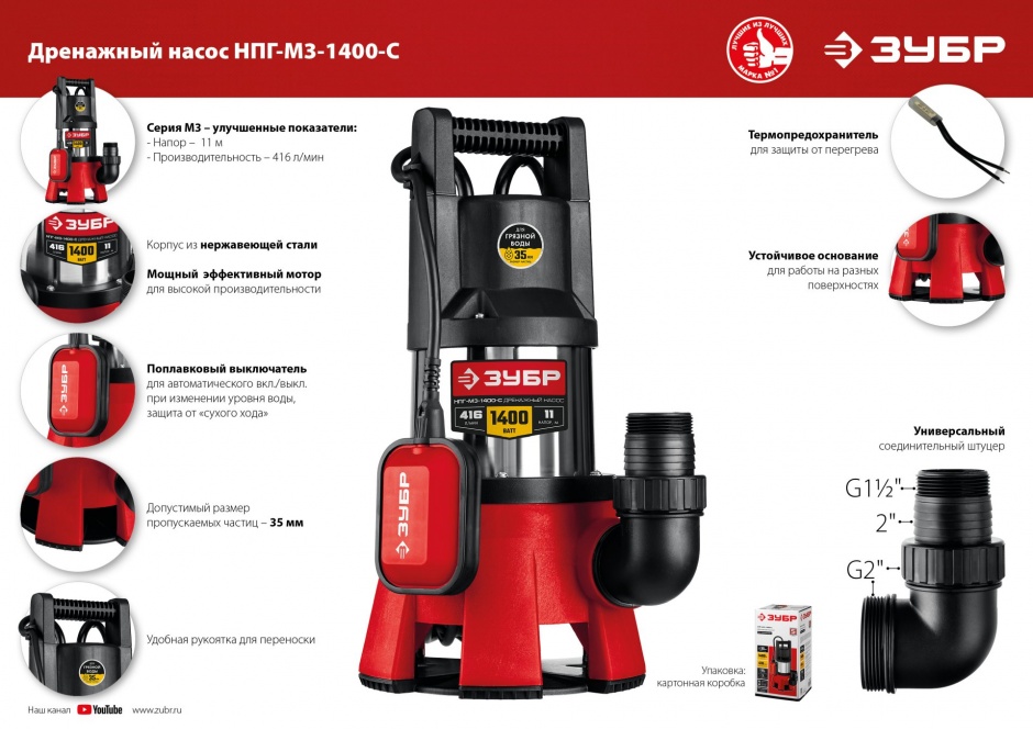 Автоматическое включение и выключение, термопредохранитель для защиты двигателя, высокие эксплуатационные свойства и простота конструкции обеспечивают надёжное и безопасное применение для перекачивания грязной и чистой воды на садовых участках, при осушении ёмкостей и водоёмов, организации забора воды с глубины (колодцы, скважины) и подачи на высоту, использовании в системах аэрации и дренажа. Для увеличения срока службы насоса используются материалы только высокого качества. При помощи этого насоса вы без труда решите поставленную задачу.