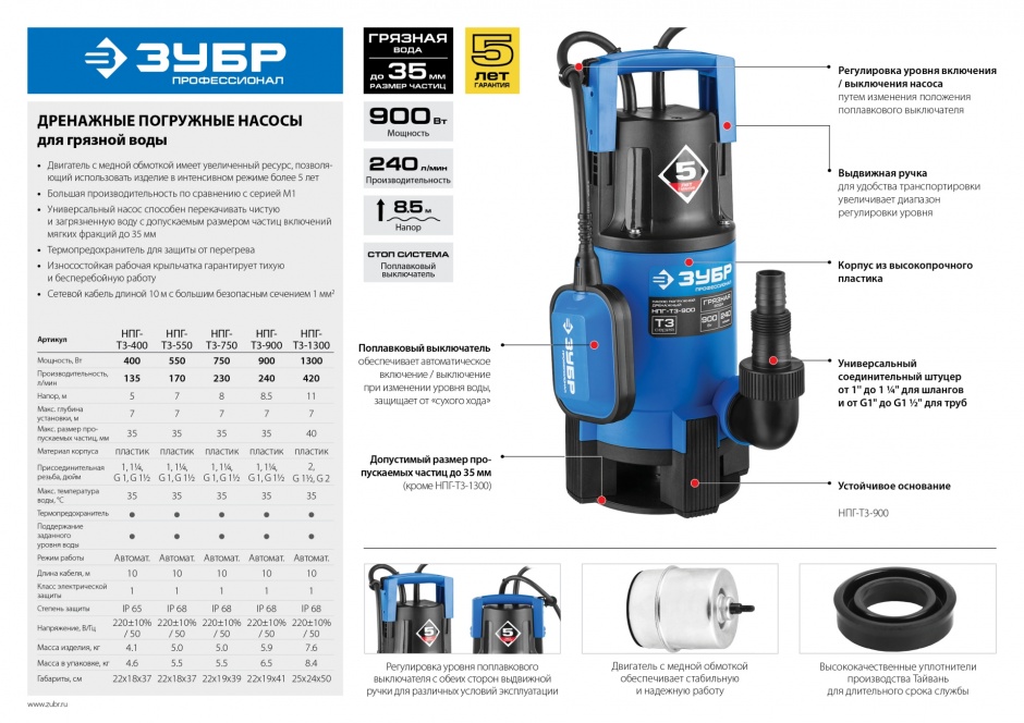 - Поплавковый выключатель обеспечивает автоматическое вкл/выкл при изменении уровня воды