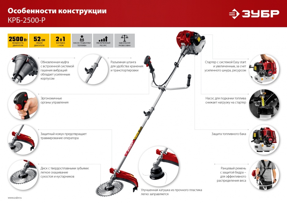 - Плечевой ремень и оптимальная развесовка облегчают эксплуатацию