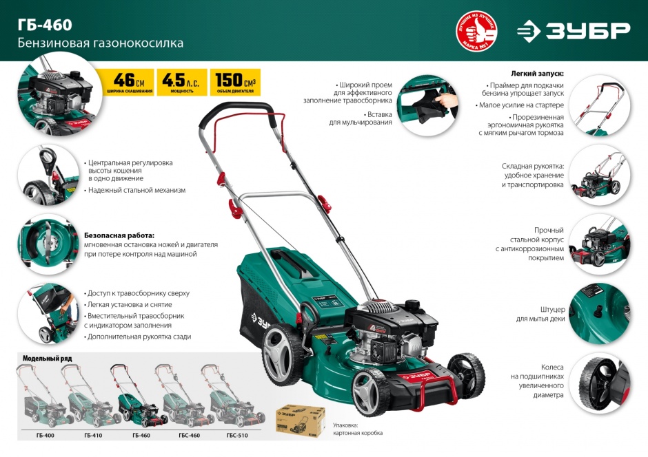 - Простой в обслуживании 4-тактный двигатель избавляет от необходимости готовить топливную смесь